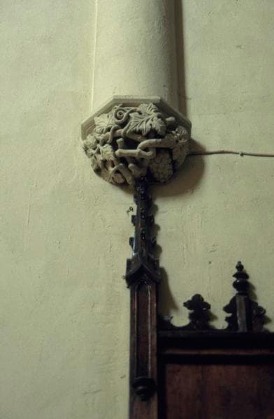 Intérieur de la nef, culot sculpté du choeur côté nord.