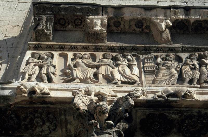 Façade ouest, frise du portail.