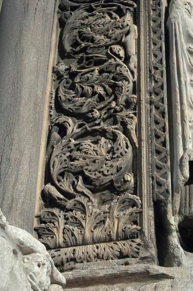 Façade ouest, portail, bas-relief (feuillage).