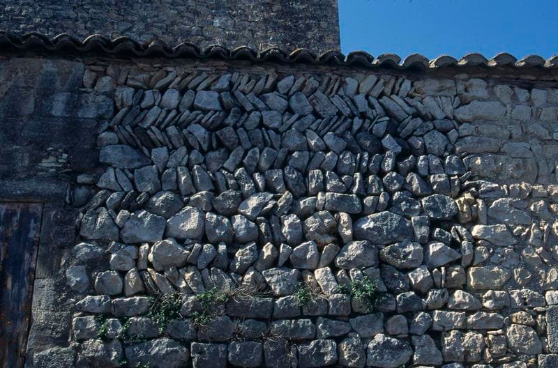Enceinte nord sur la rue du château, détail de l'appareil en arêtes de poisson.