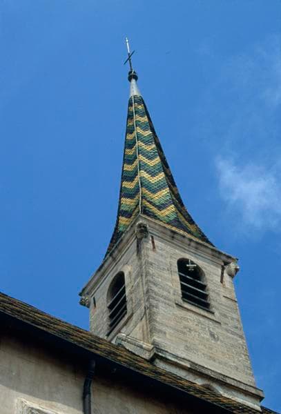 Toit : flèche recouverte de tuiles vernissées.