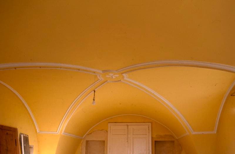 Vue intérieure du rez-de-chaussée, salon jaune, voûte.