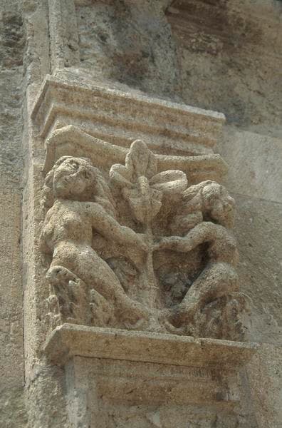 Cour, façade nord, entrée : chapiteau.