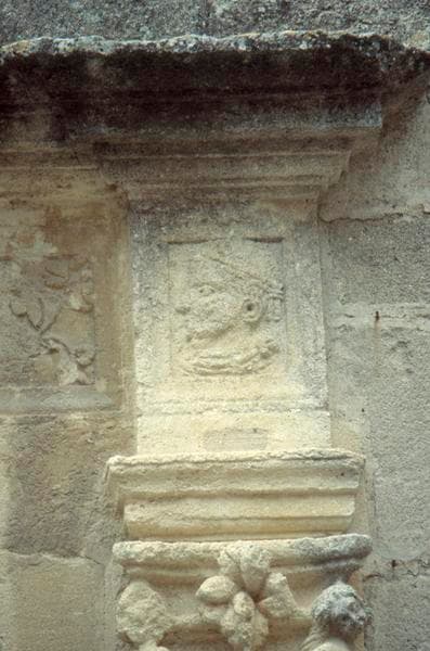 Cour, façade nord : détail sculpté de l'entrée.