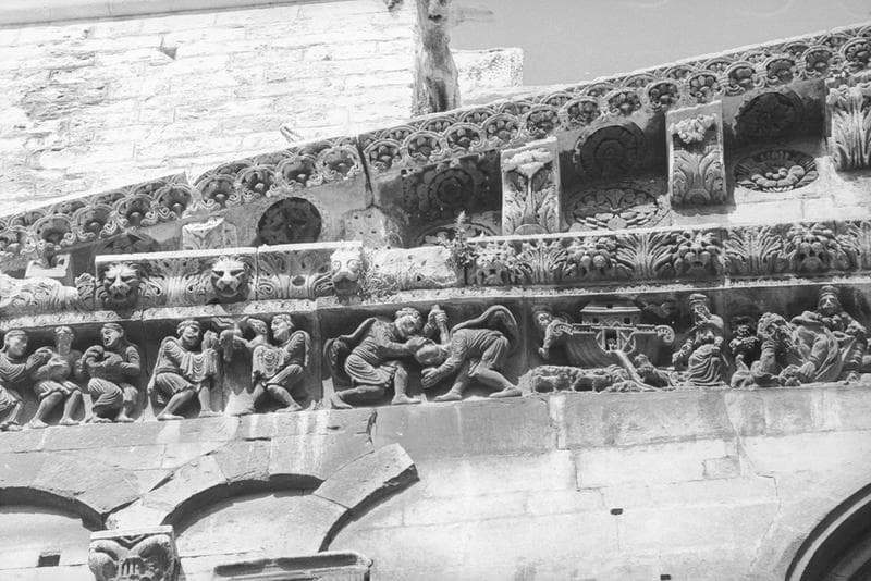 Frise de la façade occidentale : l'arche de Noé, Caïn tue son frère Abel, le sacrifice d'Abel et Cain.