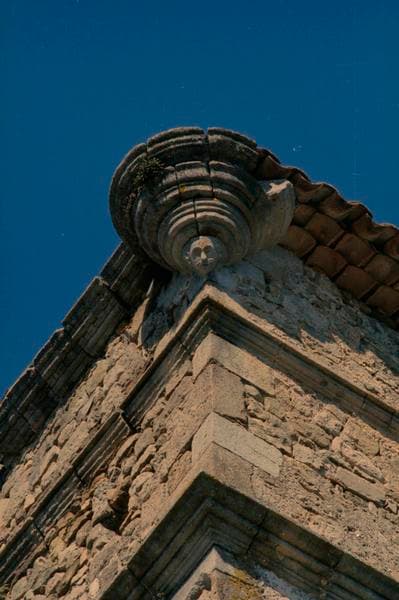 Angle sud-est : poivrière, tête sculptée.