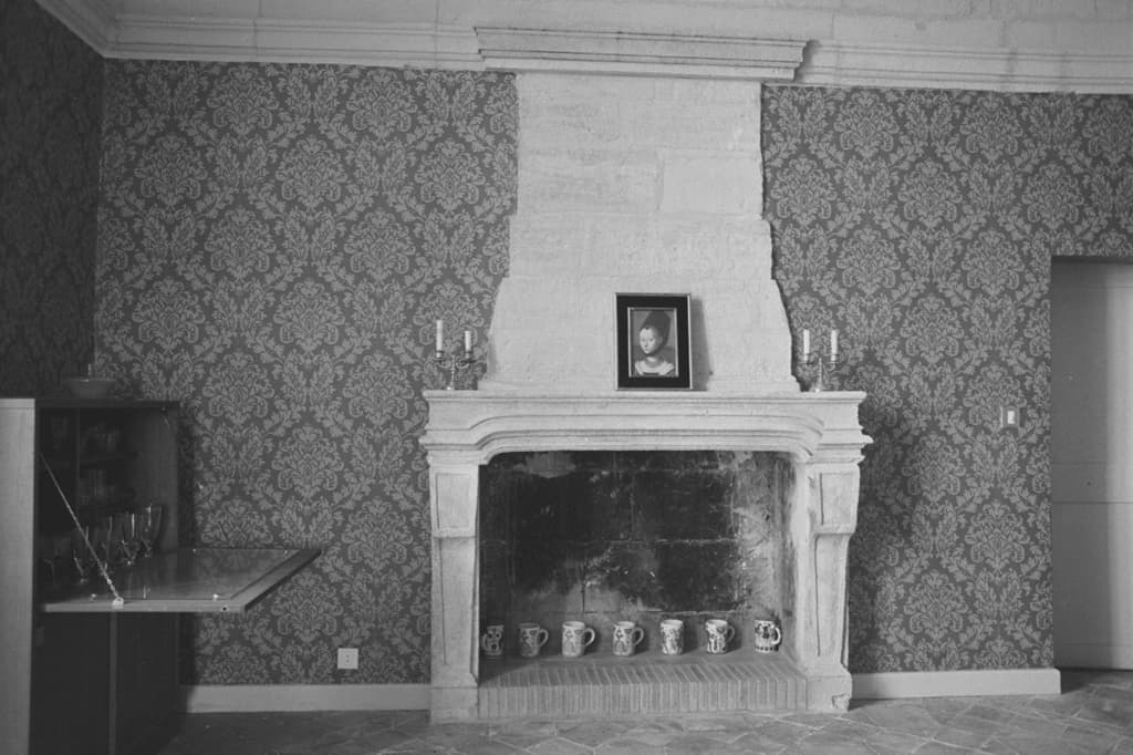 Vue intérieure du premier étage, salon ouest, cheminée.