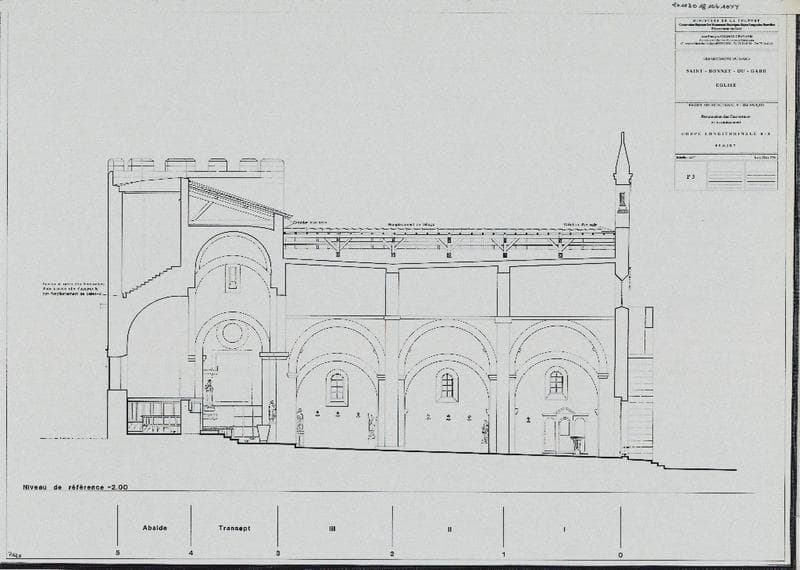 Projet architectural et technique, restauration des couvertures et assainissement, Coupe longitudinale B-B, projet, P3.