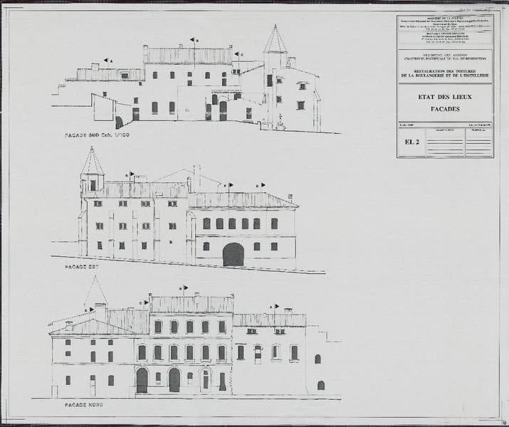 Restauration des toitures de la Boulangerie et de l'Hôtellerie : état des lieux, façades. EL2.
