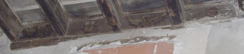 Corps de logis sur rue, plafond peint en rdc, closoirs peints en alternance de blasons et de noeuds dont un blason à croix rouge (celui du chapitre de la cathédrale).