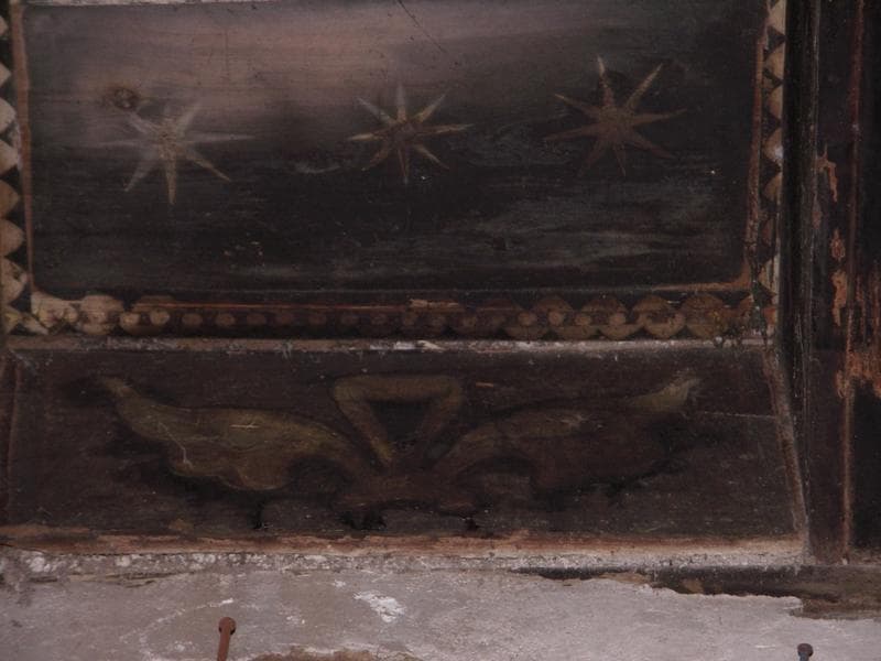 Corps de logis sur rue, plafond peint en rdc, étoiles et ruban.
