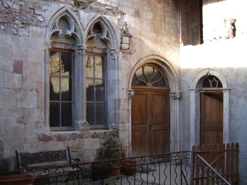 Fenêtre géminée à lancettes et porte gothique.