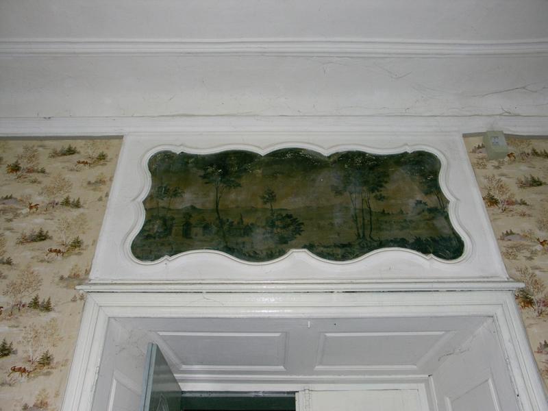 Intérieur : premier étage : détail de dessus de porte peint.