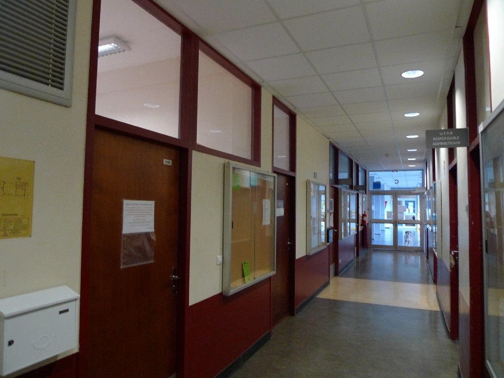 Couloir administratif du bâtiment C, rez-de-chaussée, UFR 3.