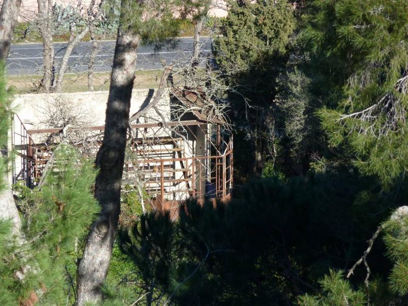 Parc côté sud : bordant la route, une serre métallique très dégradée.