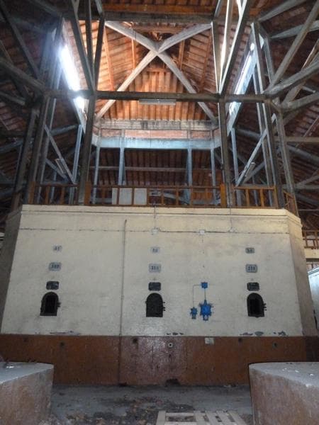 Cave de 1914. Cuves centrales sur lesquelles reposent la charpente béton de 1917.