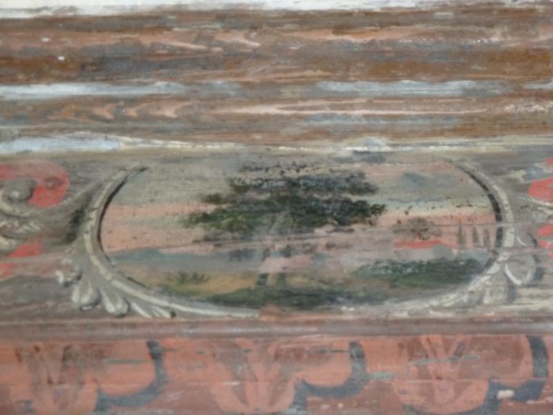 Aile nord, 1er étage, chambre à plafond peint. Médaillon, paysage.