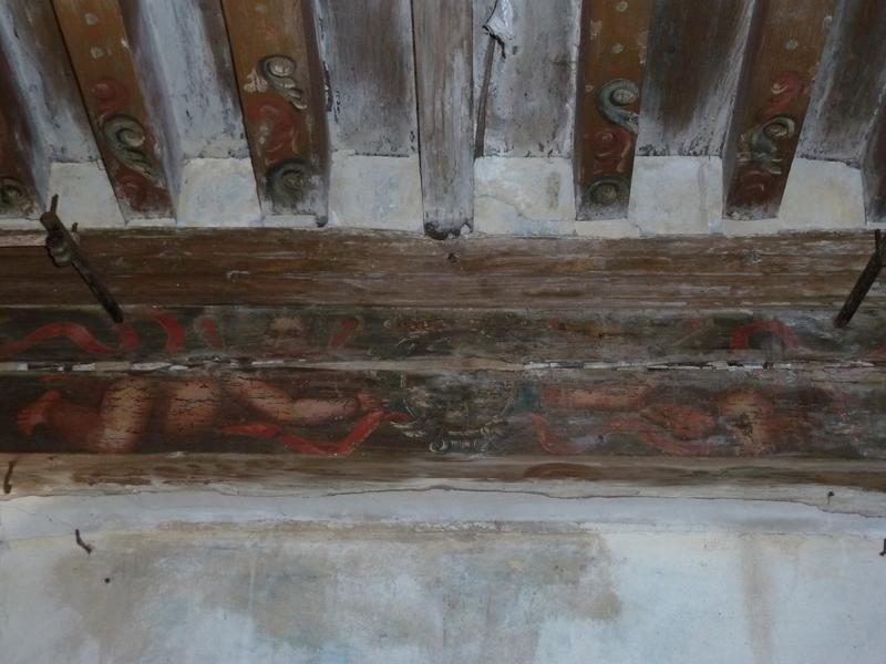 Aile nord, 1er étage, chambre à plafond peint.