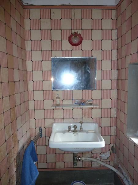 Premier étage. Aile ouest. Détail du papier peint d'une pièce de toilette.