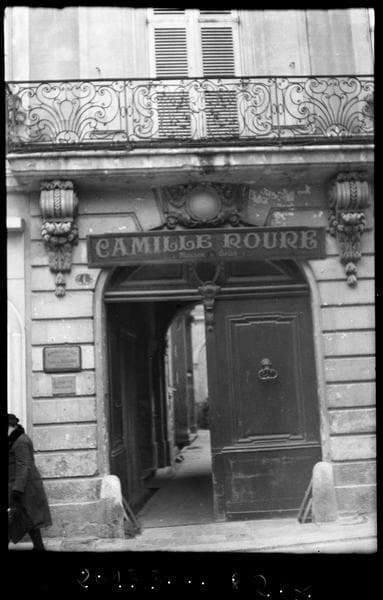 Façade sur rue de la Violette ; portail et balcon en fer forgé.