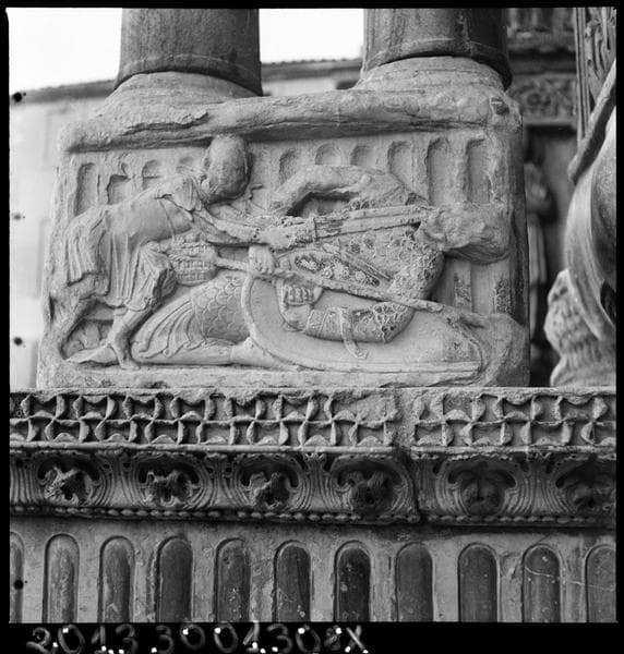Façade ouest, détail d'un bas-relief : combat.
