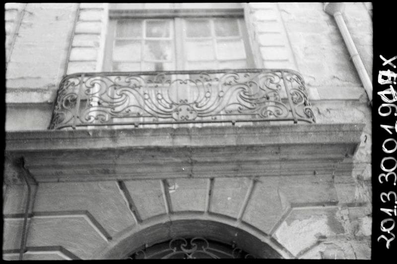 Fenêtre avec grille en fer forgé.