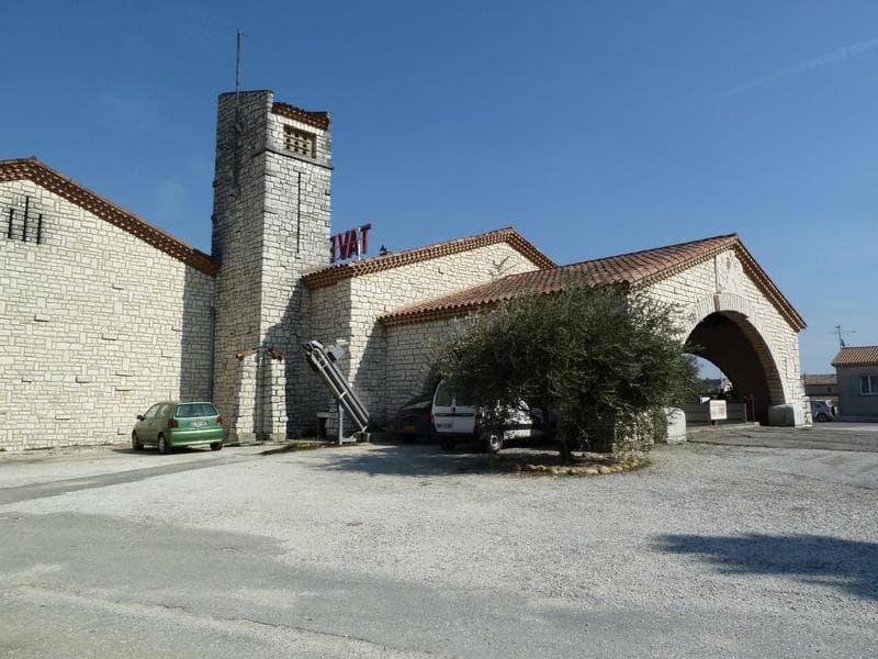 Façade de la cave d'origine avec le faux pigeonnier abritant le transformateur.