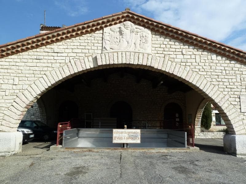 Façade de la cave d'origine : auvent en pierre abritant les quais de déchargement.