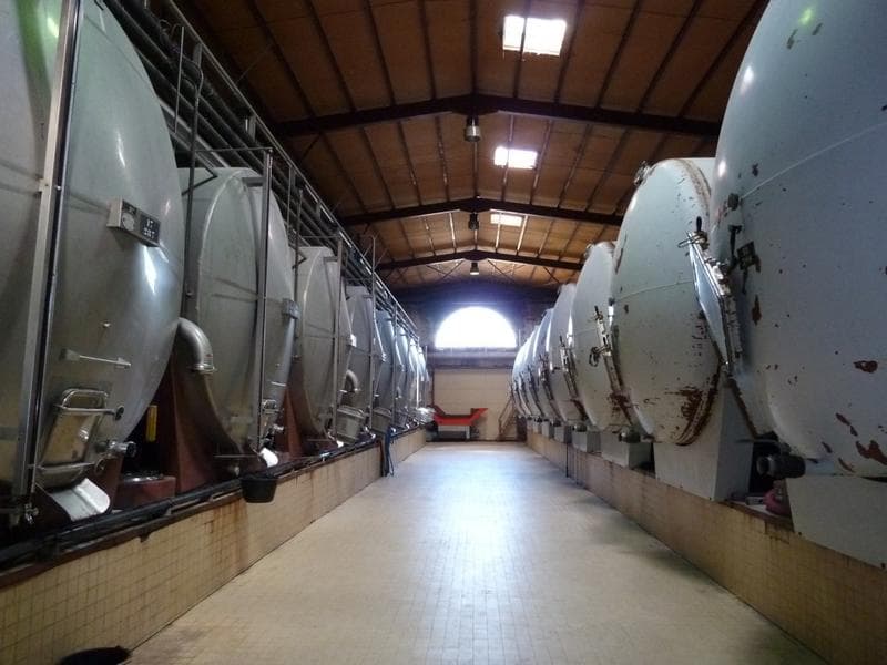Intérieur : travée de cuves de l'agrandissement de 1964 avec au fond le mur nord de la cave.