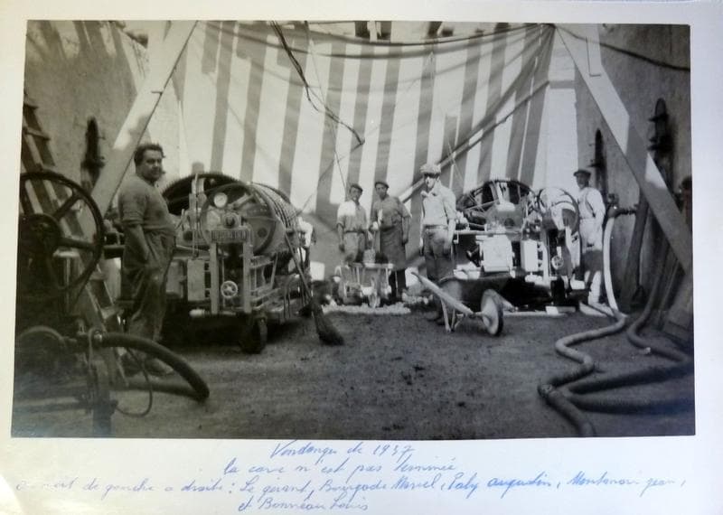Archives de la cave : vendanges de 1937, l'auvent en pierre n'est pas encore construit.