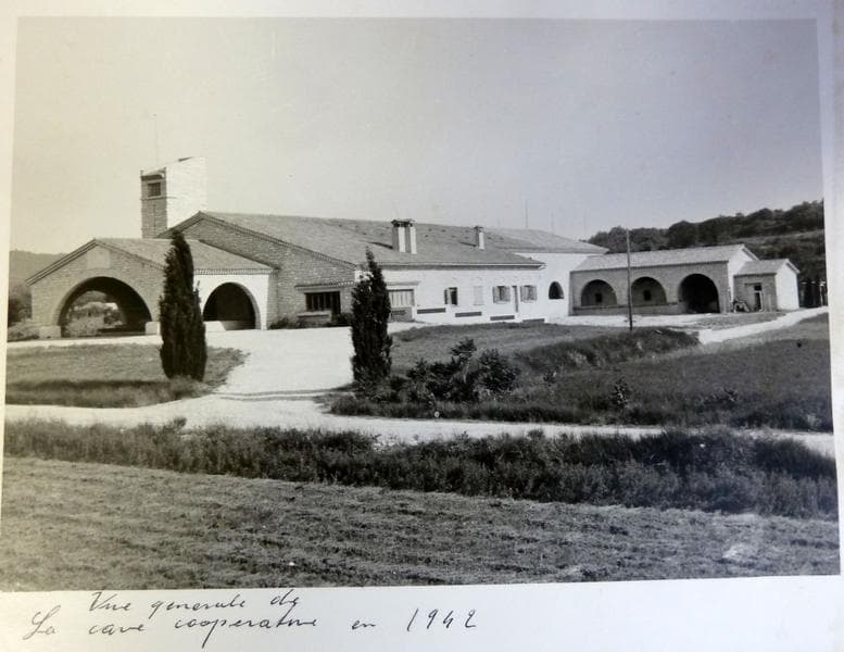 Archives de la cave : vue de la façade est avec le logement de fonction et l'agrandissement de 1942 avec le bâtiment en retour d'équerre.