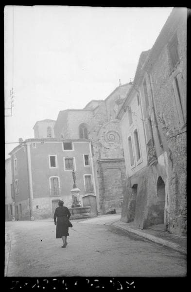 Façade Nord, transept et clocher, vue depuis une rue à l' Ouest de la Place.