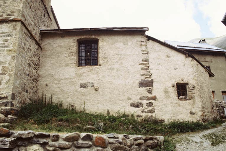 Base du clocher, choeur et sacristie (ancienne abside), vus depuis le sud.