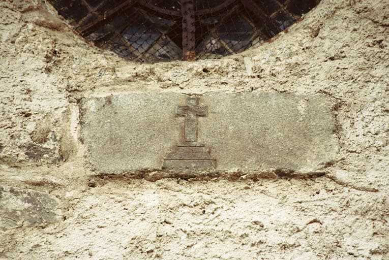 Mur sud, pierre gravée d'une croix sous l'oculus.