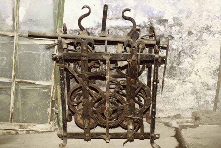Mécanisme de l'ancienne horloge déposé dans la nef.