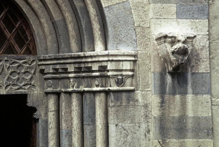 Portail ouvrant sur la deuxième travée de la nef, partie droite, chapiteaux.