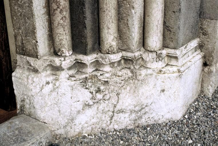 Portail ouvrant sur la deuxième travée de la nef, partie droite, base de colonnettes.