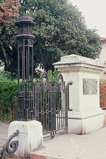 Entrée, détail grilles portillon et pilier.