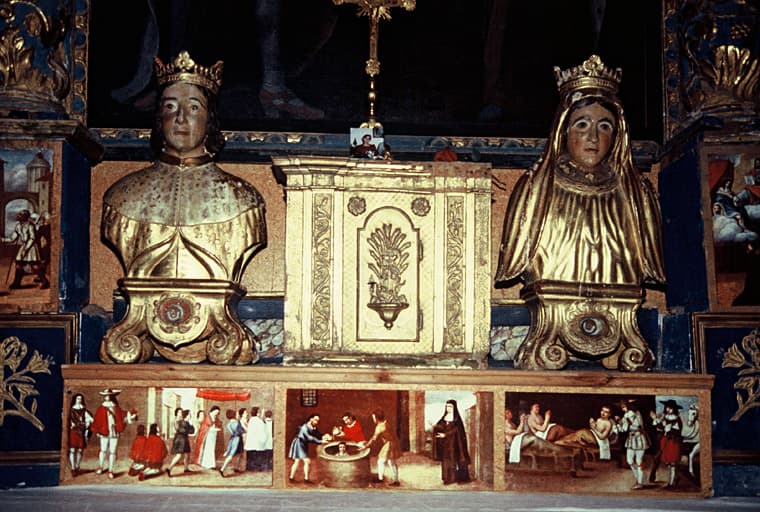 Chapelle latérale sud, autel des Saints Elzéard et Delphine de Sabran, bustes reliquaires.