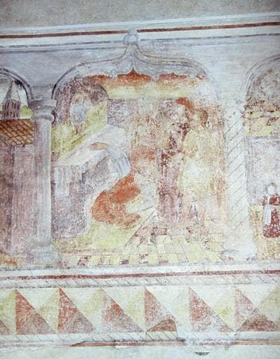 Mur nord, décor peint, scène de la vie de Saint-Pancrace.