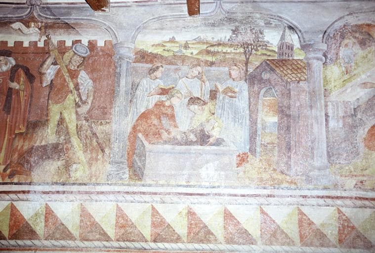 Revers du mur ouest, décor peint, scène de la vie de Saint-Pancrace.