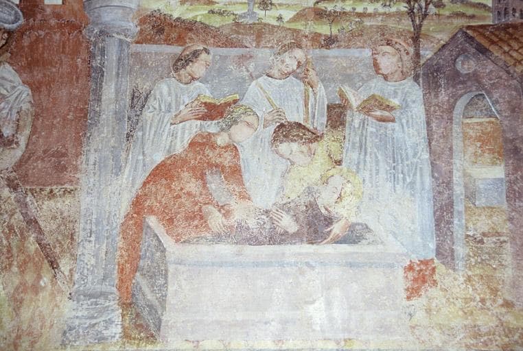Revers du mur ouest, décor peint, scène de la vie de Saint-Pancrace.