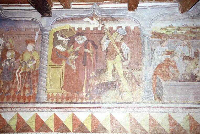 Revers du mur ouest, décor peint, scène de la vie de Saint-Pancrace.
