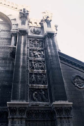 Façade ouest : décor sculpté, les mystères du Rosaire.