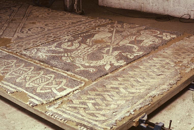 Mosaïque en cours de restauration.