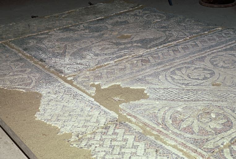 Mosaïque en cours de restauration.