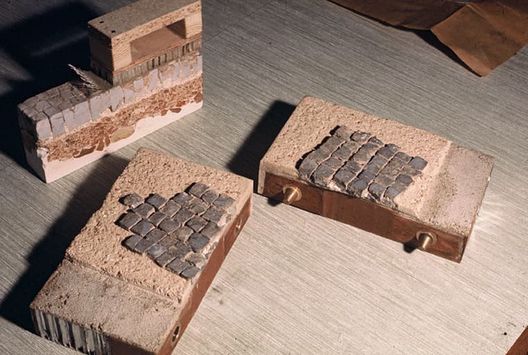 Mosaïque en cours de restauration.