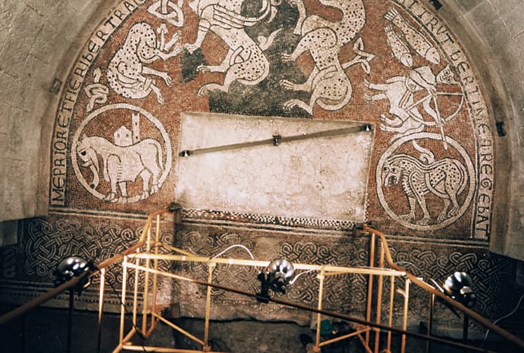 Mosaïque en cours de restauration.