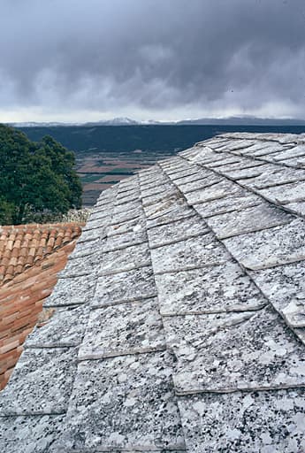Toitures de lauzes et tuiles.