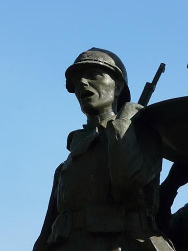 Groupe supérieur en bronze, buste du soldat de gauche.